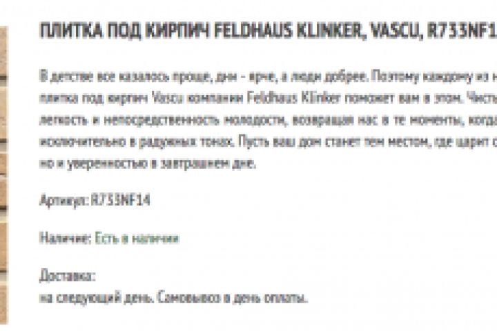 В текст также требовалось органично вписать ключевые слова, название, цвет и номерные знаки плитки.