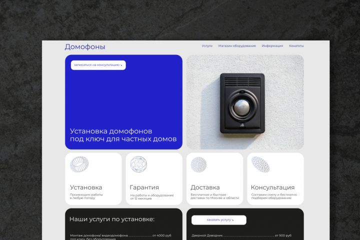 Минималистичный, серьезный современный дизайн сайта для компании по установке и продаже домофонов в Москве