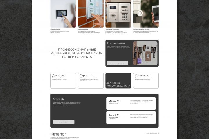 Минималистичный и строгий дизайн для компании, которая занимается установкой и продажей домофонов в Москве