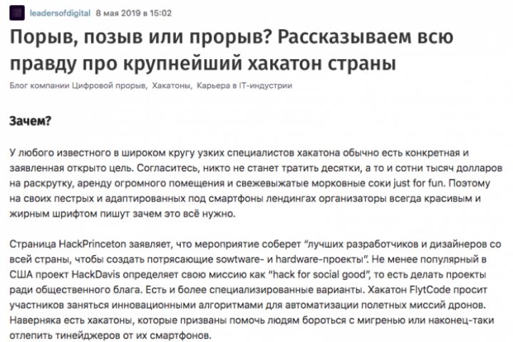 Цикл статей для блога компании-организатора крупнейшего хакатона страны — "Цифровой прорыв"