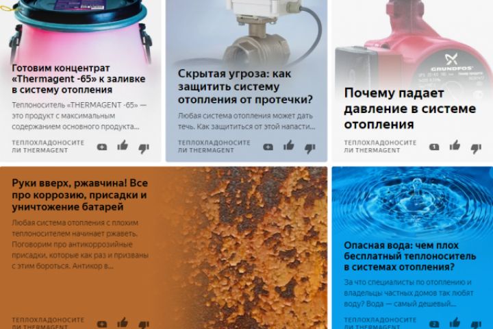 Цикл из 12 статей на площадку Яндекс.Дзен для ведущего производителя жидких теплоносителей ''Термагент"