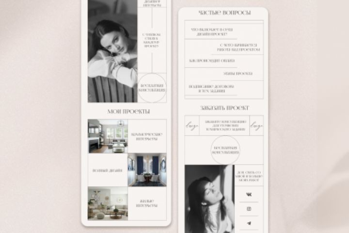 Создание одностраничного мобильного сайта для дизайнера интерьера, стиль-минимализм