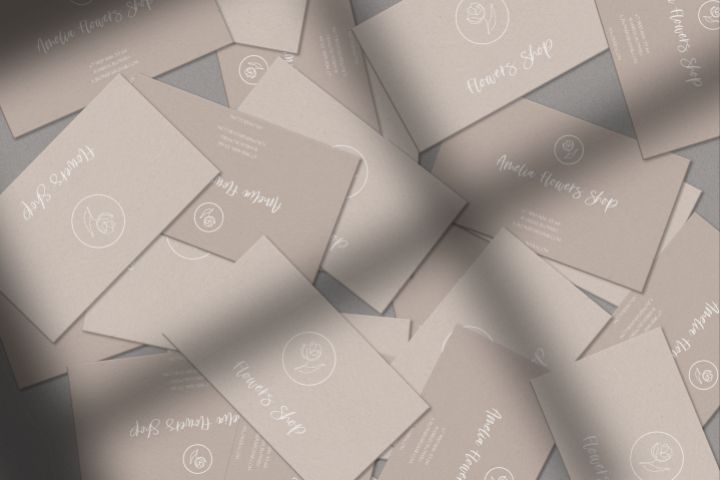 Создание визитки и логотипа для цветочного магазина. Визитка сделана в бежевых оттенках. с одной стороны логотип, с другой информация и контакты