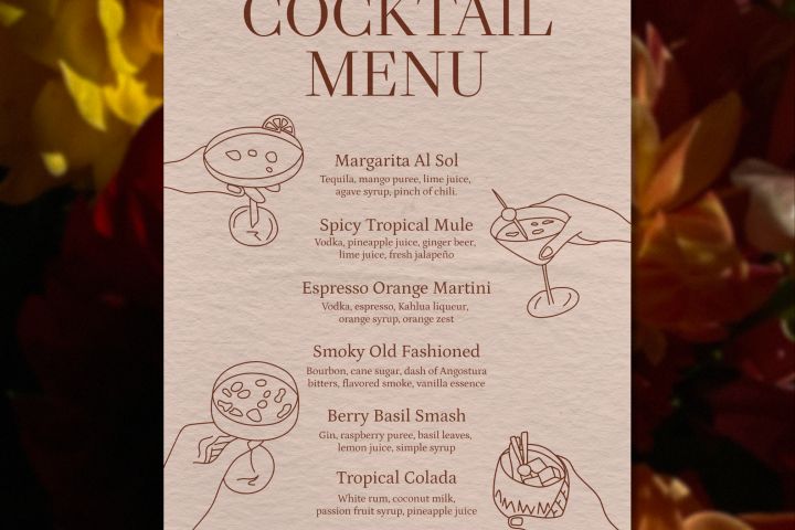 Фирменный дизайн для карты бара, индивидуальная отрисовка деталей