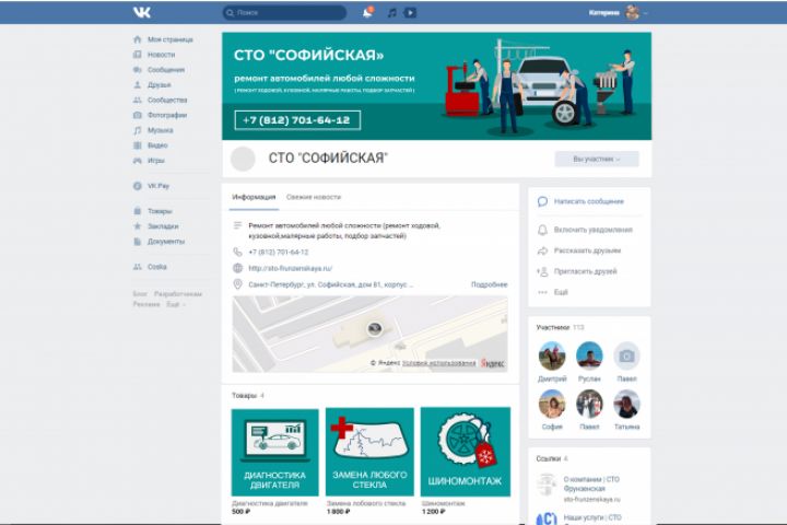Оформление группы вк СТО Софийская