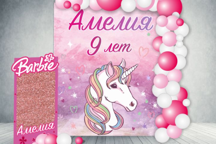 Баннер и визуализация для Амелии в стиле барби.