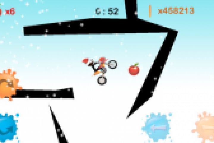 2D игра в которой игрок собирая бонусы должен добраться до финиша. Есть несколько типов поверхности по цвету, черная - обычная статичная(земля, нужно избегать касаний головой, вращая байкера), красная, статичная(лава) при касании ее байкер умирает, и коричневая(динамичная), что двигается и вращается при касании ее байкером.