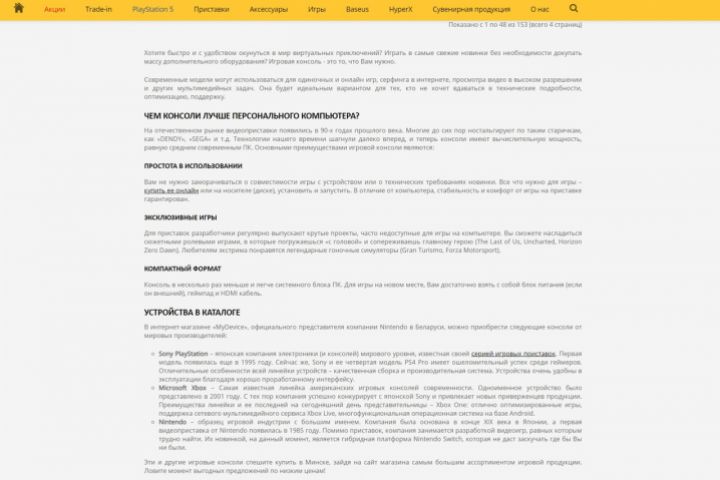SEO-статья с описанием для интернет-магазина игровых консолей