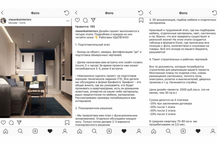Пост в Инстаграме "Дизайн-ремонт-интерьер"