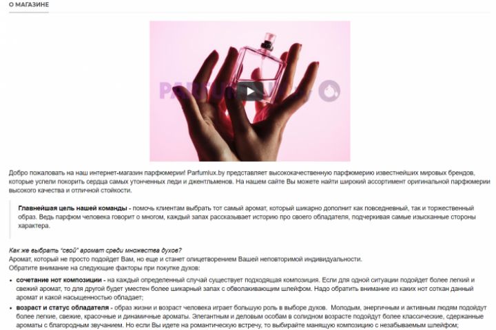Текст об интернет-магазине парфюмерии Parfumlux.by