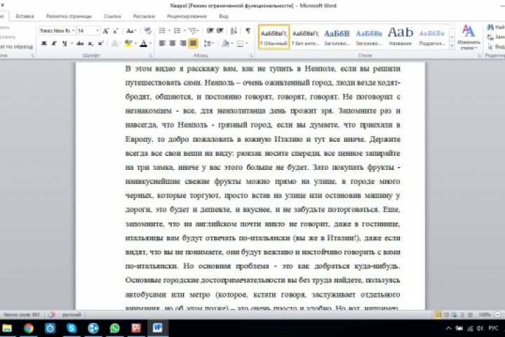 Корректировка текста для видео-блога о путешествиях