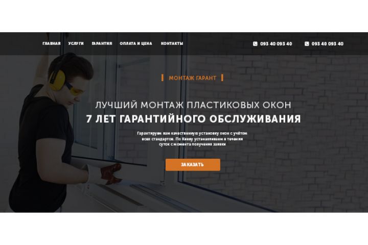 Дизайн лендинга компании по установке пластиковых окон "Монтаж Гарант". Работа создавалась для конкурса первых экранов компании "Монтаж Гарант".