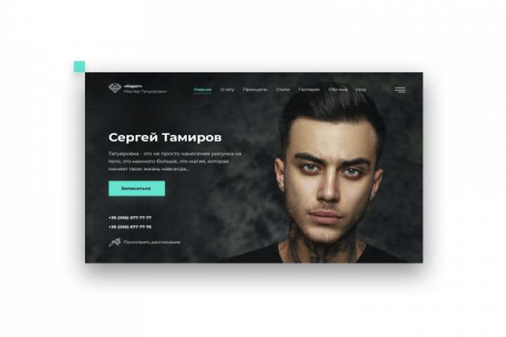 Landing page для частного мастера татуировки Вы можете ознакомиться с полным проектом, перейдя по ссылке на портфолио Behance