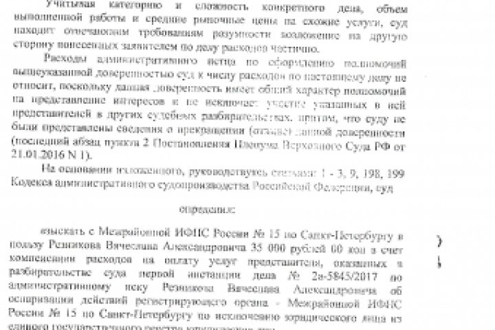 В данном деле примечательно, что сумма взыскана с гос.органа (для судов это считается очень высоким размером). Тем не менее, определение не обжаловалось. Ответчик согласился с судом. Привожу фрагмент текста (как позволяют технические возможности сайта).