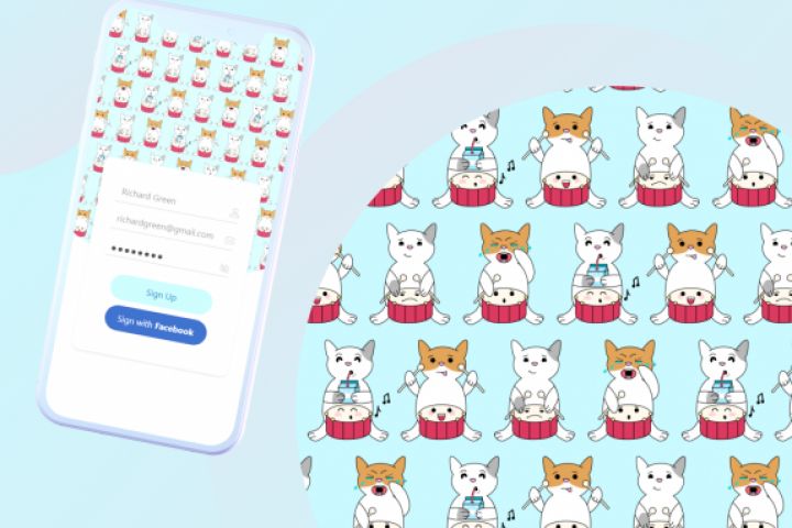 Пример использования иллюстрации паттерна для оформления мобильного приложения
