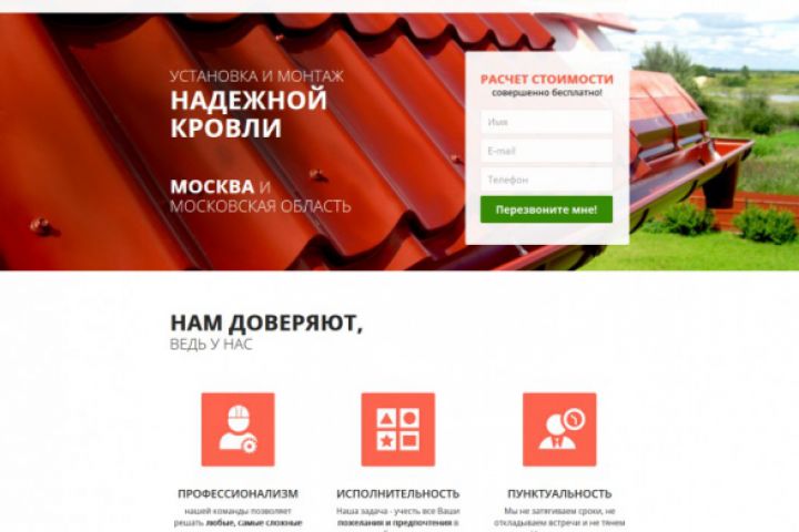 Разработка Landing Page для строительной компании P-R-S. Основное направление - установка и монтаж кровель в Москве и Московской области.