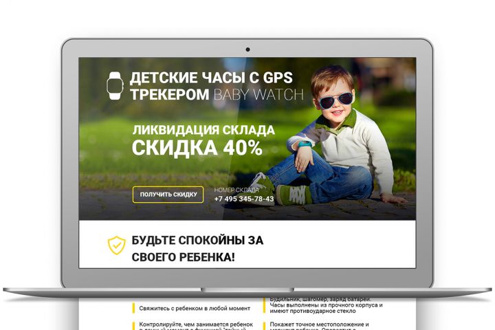 Дизайн и разработка лендинга по продаже умных детских часов с GPS трекером