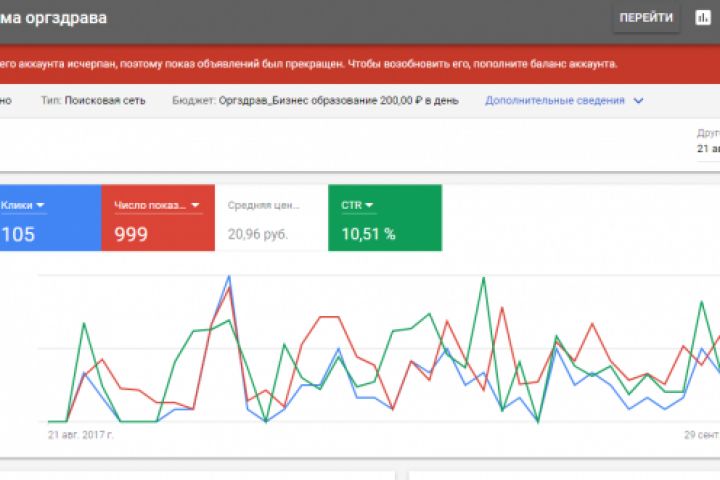 Контекстная реклама Google Adward по продвижению программы обучения для руководителей медицинских организаций.