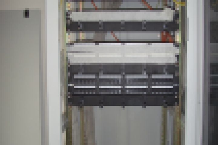 Большая территория офиса 2,3,4 этаж не позволяла использовать один центр коммутации, поэтому помимо главного кросса были оборудованы промежуточные центры коммутации, связанные с главным кроссом 8-ми волоконными многомодовым оптическим кабелям 50/125 мкм и многопарным кабелями «витая пара» 25 пар.По окончании монтажа проведено тестирование СКС на соответствие категории кабельным тестером FLUKE NETWORKS.