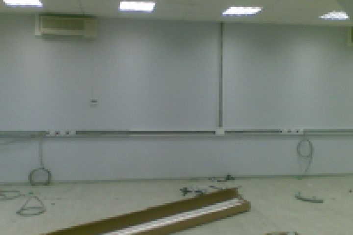 Прокладка лотков, установка фальшпола 25 кв. м., подвесного потолка (армстронг) 30 кв. м. .