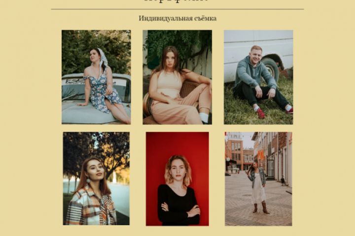 Портфолио для фотографа. Сайт с подробным описанием ценности услуги и примерами работ различных направлений