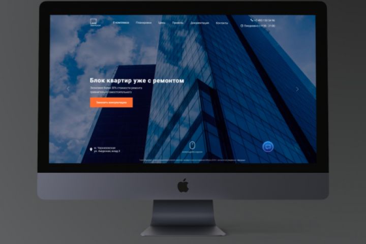Лендинг для московской строительной компании "Level Амурская". Прототипирование + дизайн и адаптив под планшетную и мобильную версии. Инструменты: Figma, Photoshop.