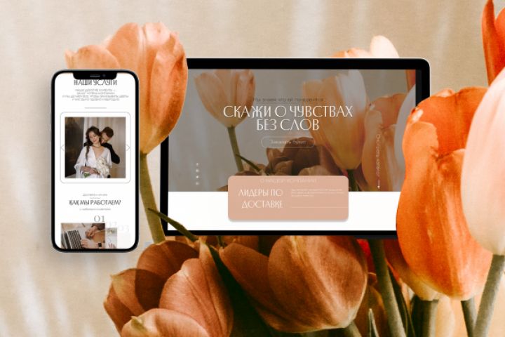 Дизайн-концепт магазина цветов. Разработан в программах Adobe XD и Adobe Photoshop. Для адаптивности сайта было создано две версии макета - мобильная (750 px) и Desktop (1920 px).