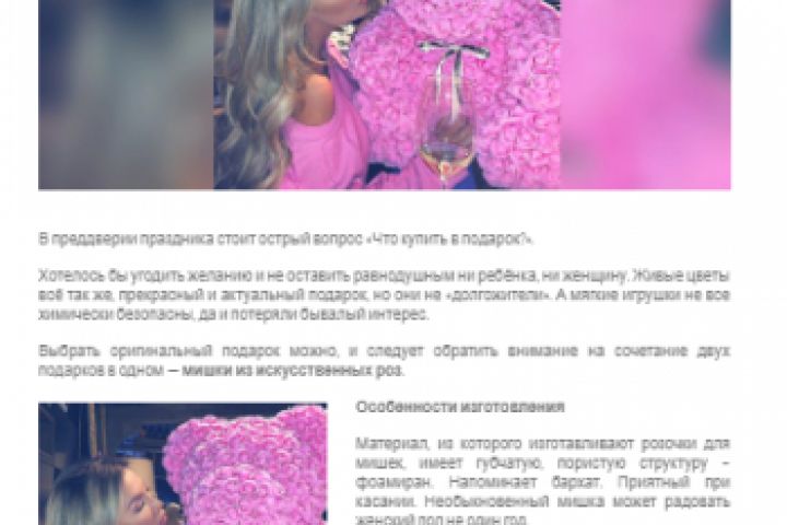 Выбрать оригинальный подарок можно, и следует обратить внимание на сочетание двух подарков в одном - мишки из искусственных роз.