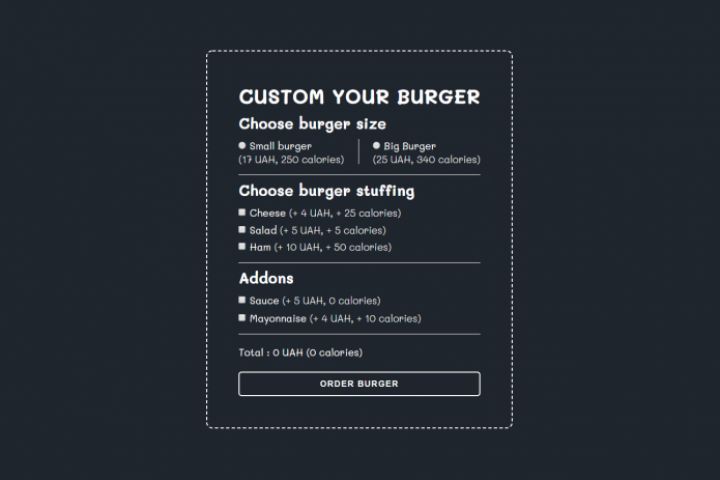 Дизайн и разработка функционала блока с заказом бургера.
