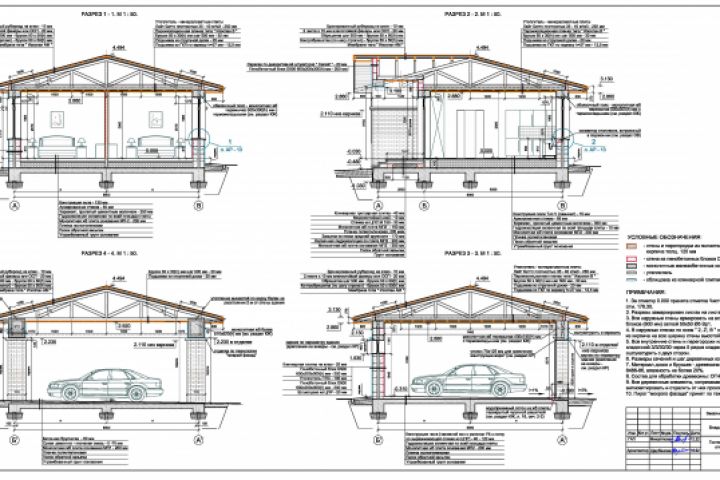 Гостевой дом с гаражем. Разрезы. 2022 г.