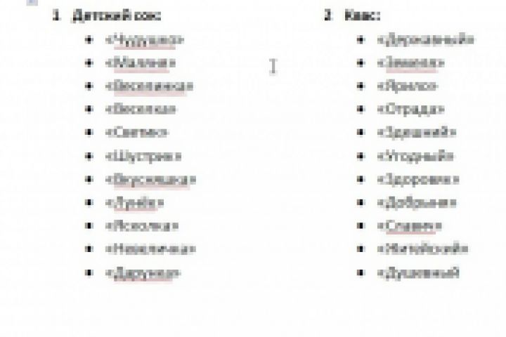 Названия для детского сока и кваса (взрослого)