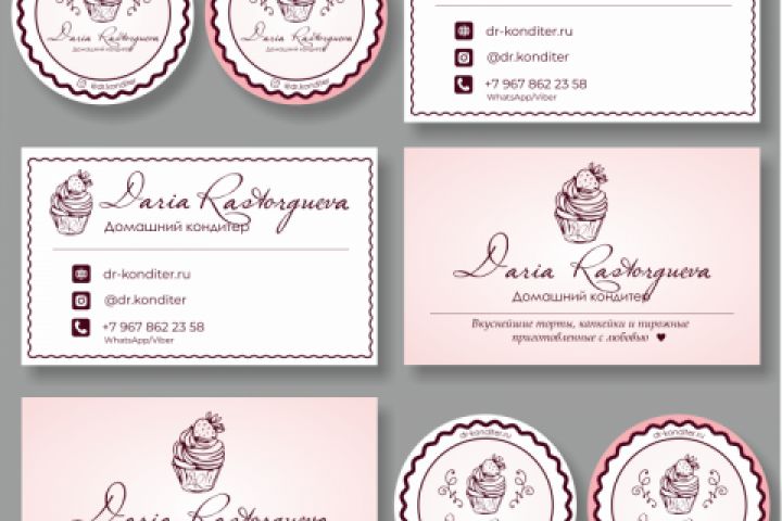 Полиграфическая продукция для кондитера: визитки, наклейки-стикеры