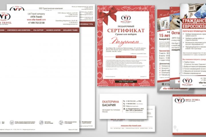 Полиграфическая продукция для туристической компании: фирменные бланки, визитки, сертификаты, анкеты, рекламные листовки, блокноты и кубы для записей