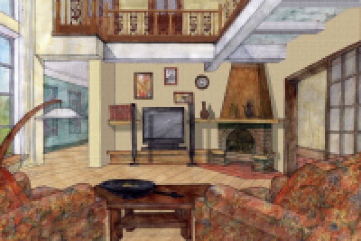 Коттедж в Нахабино. Эскиз гостиной (вариант). 2006 г.