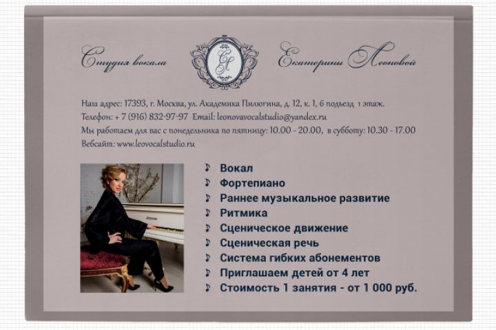 Требовалось создать в едином с веб-сайтом и визитной карточкой флаер формата A5 для печати.