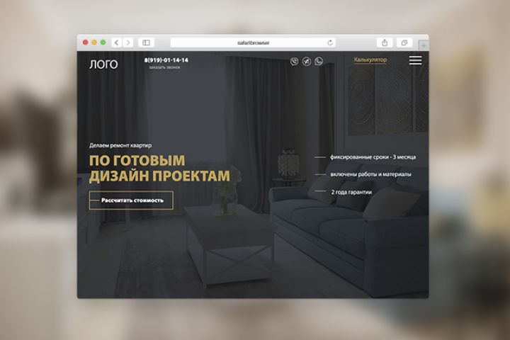 Требуется увеличить доверие клиентов к компании, использовать концепт схожий с ворона.рф . Также необходимо интегрировать калькулятор расчета стоимости ремонта и подбор дизайн-концепта ремонта прямо на сайте.