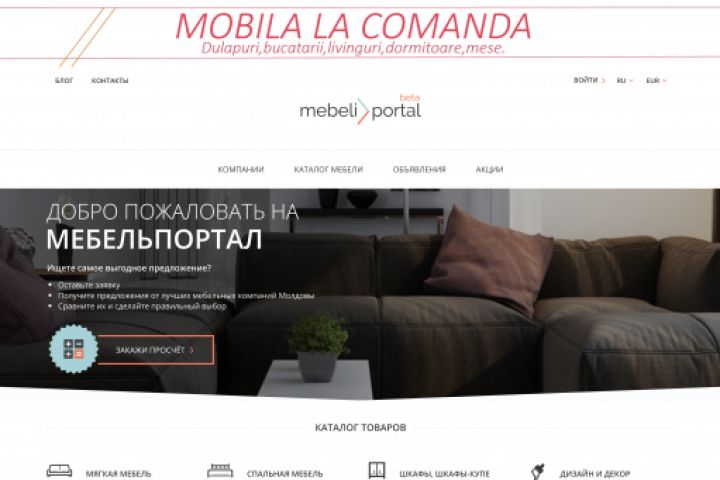 ДОБРО ПОЖАЛОВАТЬ НА МЕБЕЛЬПОРТАЛ Ищете самое выгодное предложение? Оставьте заявку Получите предложения от лучших мебельных компаний Молдовы Сравните их и сделайте правильный выбор