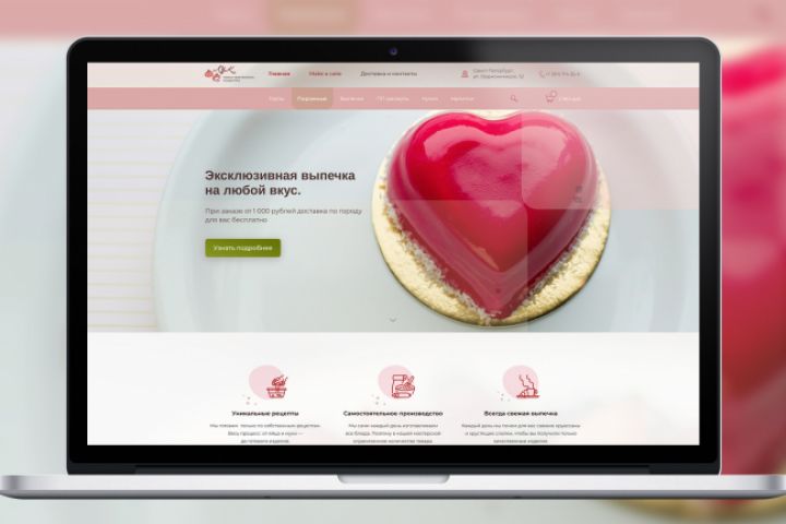 Необходимо было сделать редизайн сайта для кондитерской. Разработать новый логотип и стиль сайта.