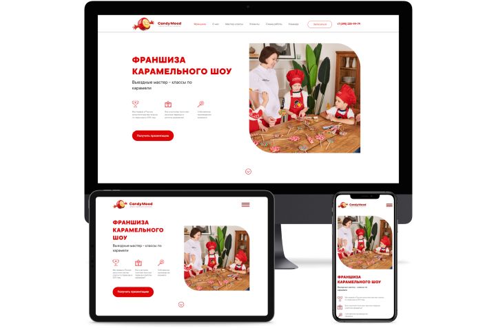 Вёрстка лендинга для фабрики леденцов и карамели Candy Mood