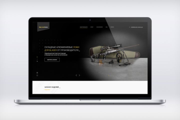 ЦА специфическая: мужчины старше 35 лет с уровнем дохода выше среднего (охотники, стрелки). Необходимо было разместить много технических деталей и описания изделий, но одновременно удержаться в рамках минимализма.