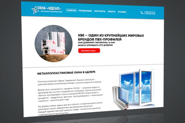 Оформление нового дизайна для сайта Окна "Идеал". Работа выполнена в Photoshop макет в PSD-формате.