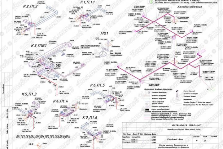 Особняки 1500м2 . Моск.обл. Проект отопления на 36 листах (водяной теплый пол,радиаторы), Проект вентиляции (мех. c рекуперацией) ,кондиционирования (Чиллер-фанкойлы) на 39 листах.