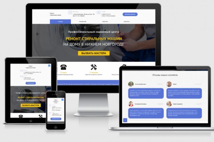 Многостраничный сайт сервиса ремонта стиральных машин с лендинговой структурой страниц