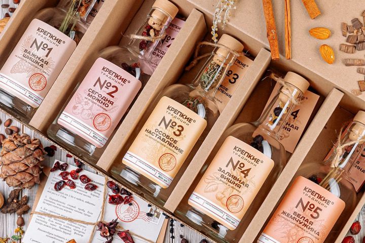 Крепкие традиции наборы для домашних настоек-этикетки, коробки, упаковка