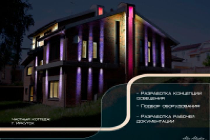 Подсветка частного коттеджа в г. Иркутск - Разработка концепции освещения; - Подбор оборудования; - Разработка рабочей документации.