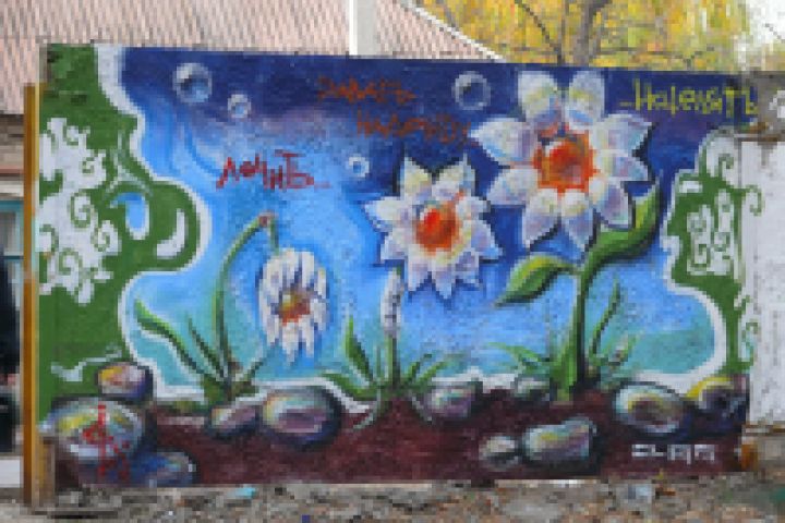 "лечить, давать надежду,.."; граффити для конкурса в г. Донецк