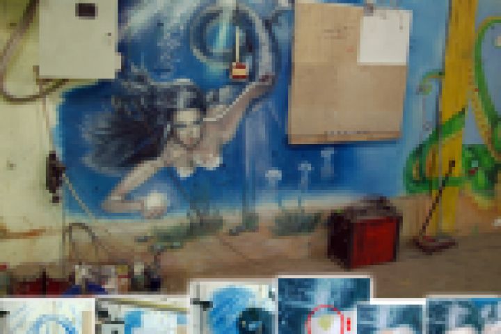 Аэрограф, роспись стены в студии аэрографии.