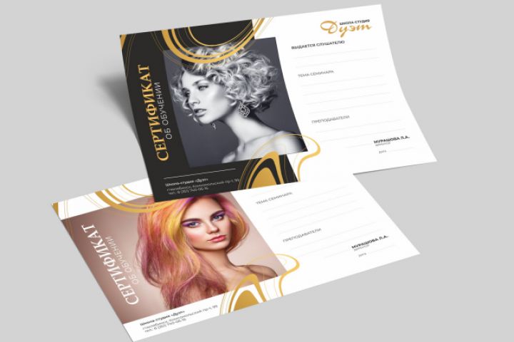 Сертификат А4. Салон красоты, обучение.
