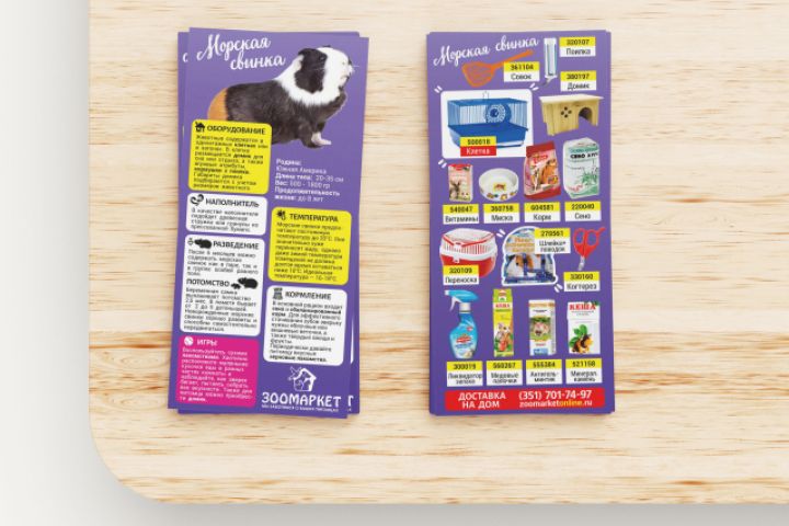 Лицевая сторона лифлета содержит описание животного и особенностей содержания и ухода.