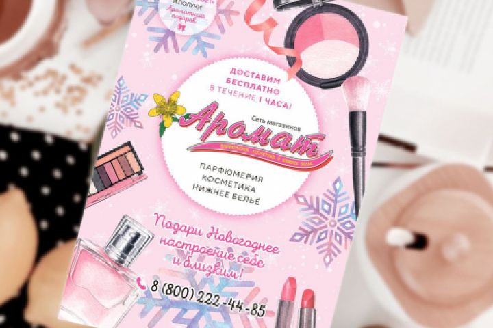 Двусторонняя листовка формата А5 для магазина парфюмерии, косметики и нижнего белья "Аромат"